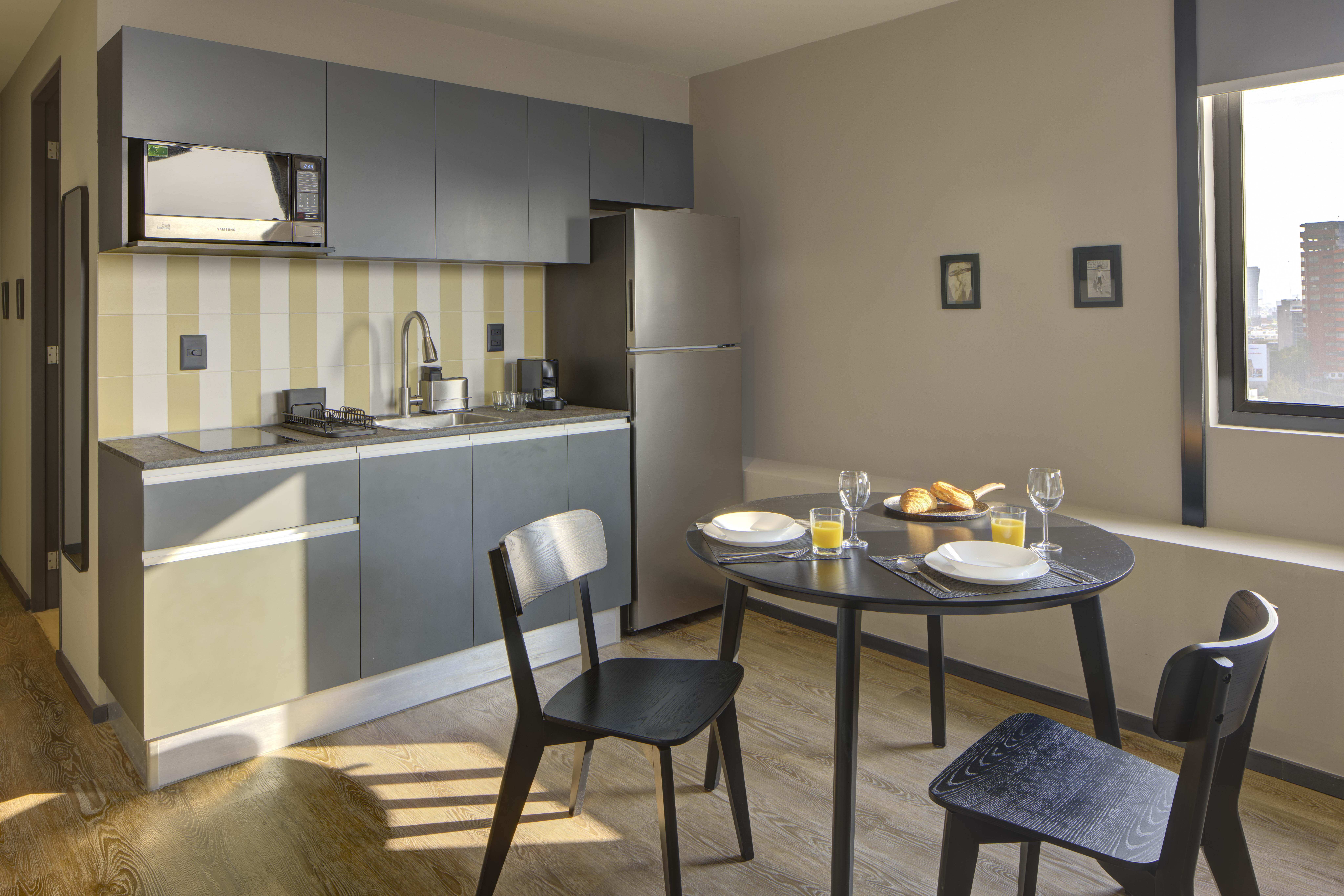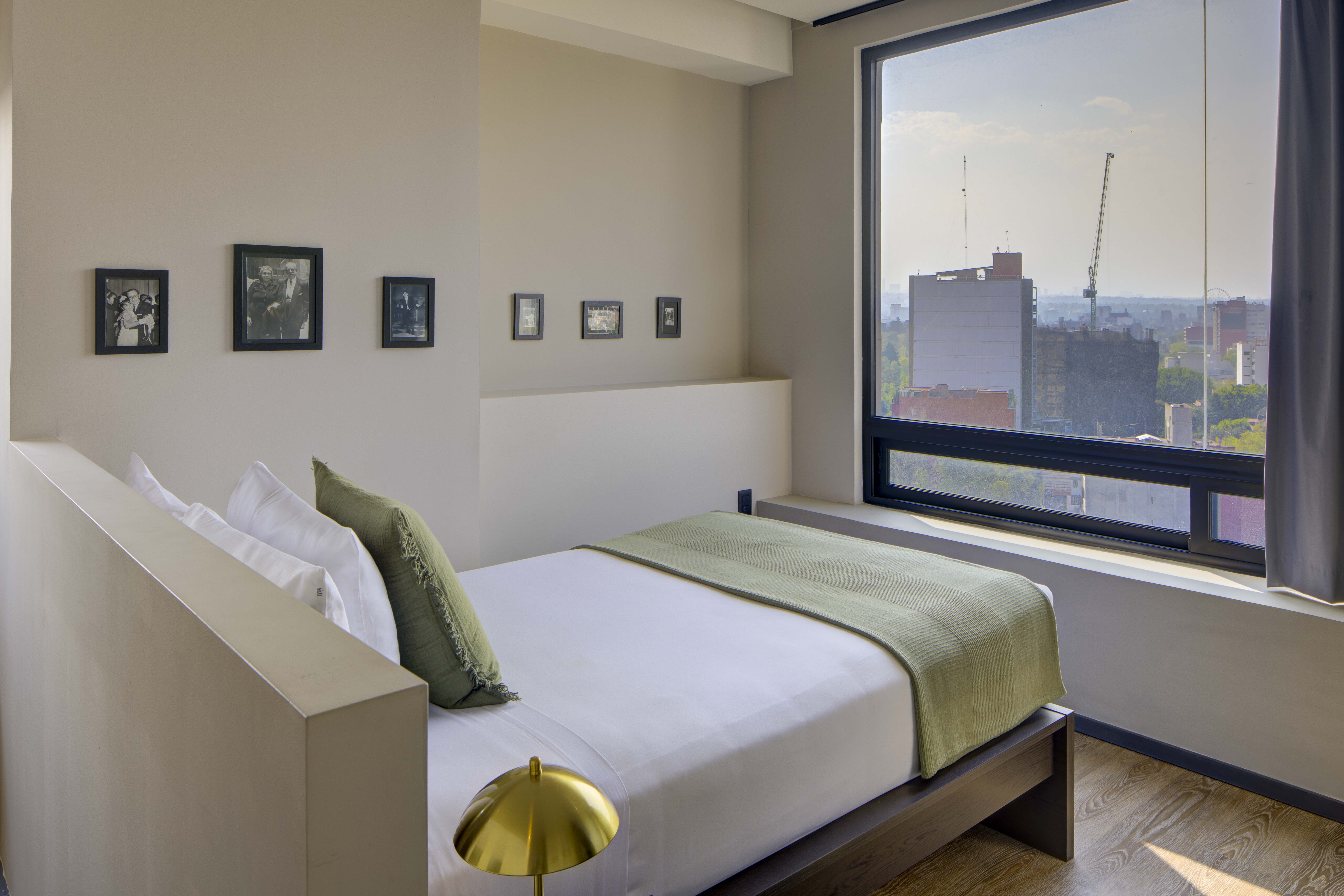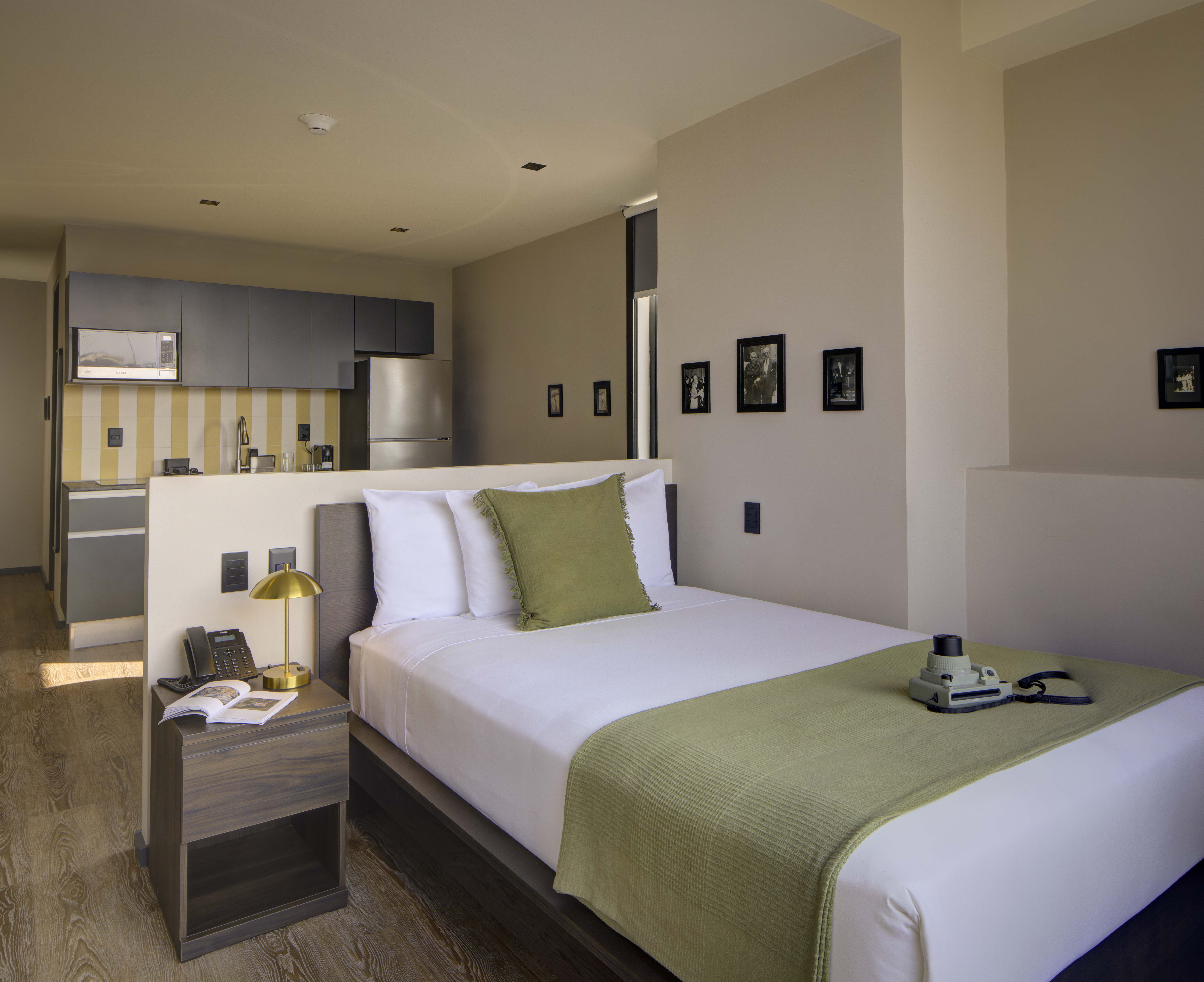 Nuestra Standard Suite te espera en la vibrante Roma Norte. Disfruta de una cama matrimonial pillowtop y un baño de diseño con ducha tipo lluvia y amenities de lujo. Tendrás tu propio comedor y una kitchenette con refri y microondas. Algunas suites ofrecen vistas a la colonia (sujeto a disponibilidad). Equipada con Smart TV 65”, WiFi gratis, cortinas blackout, caja fuerte, Nespresso, plancha y tabla. ¡Tu refugio smart en CDMX!